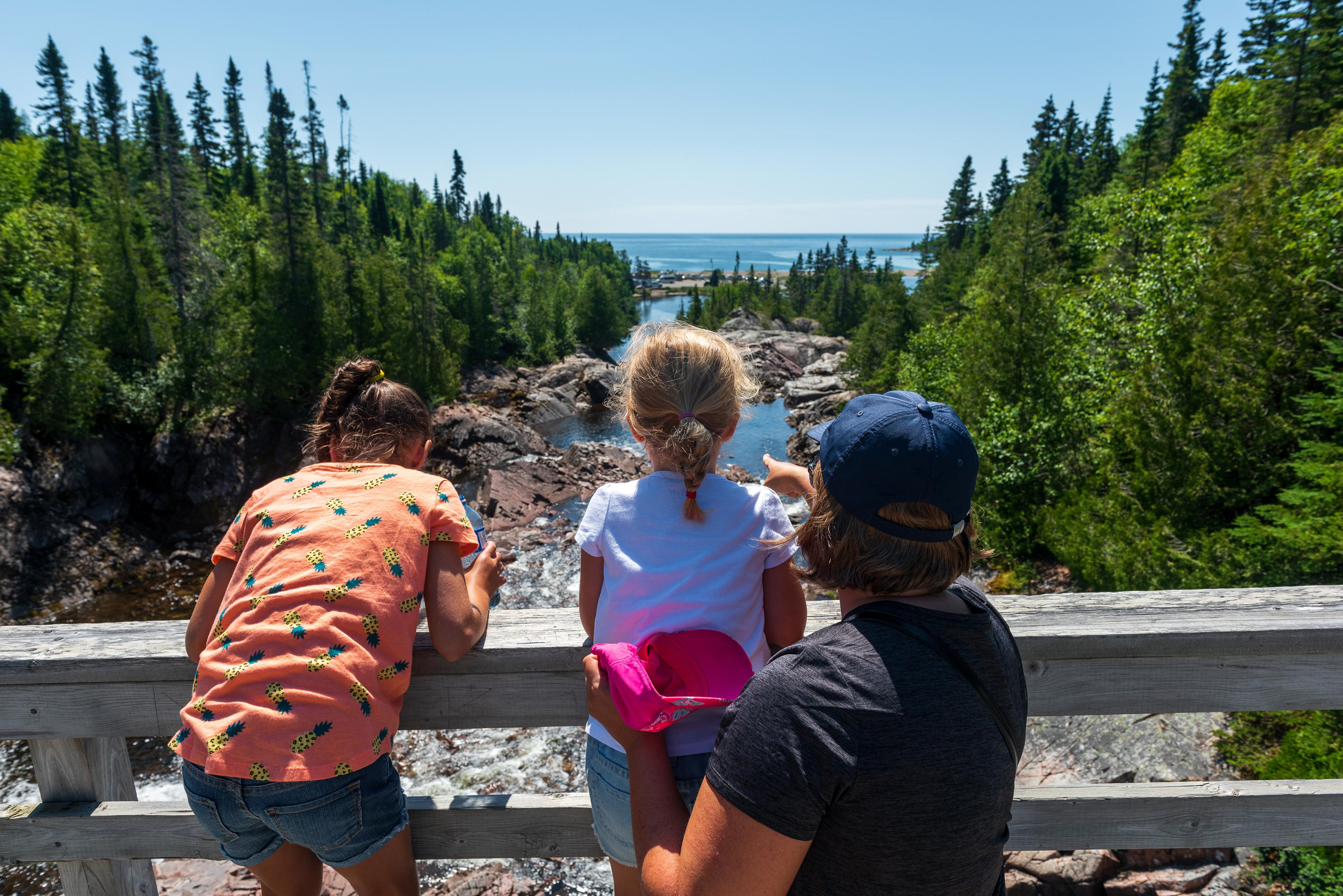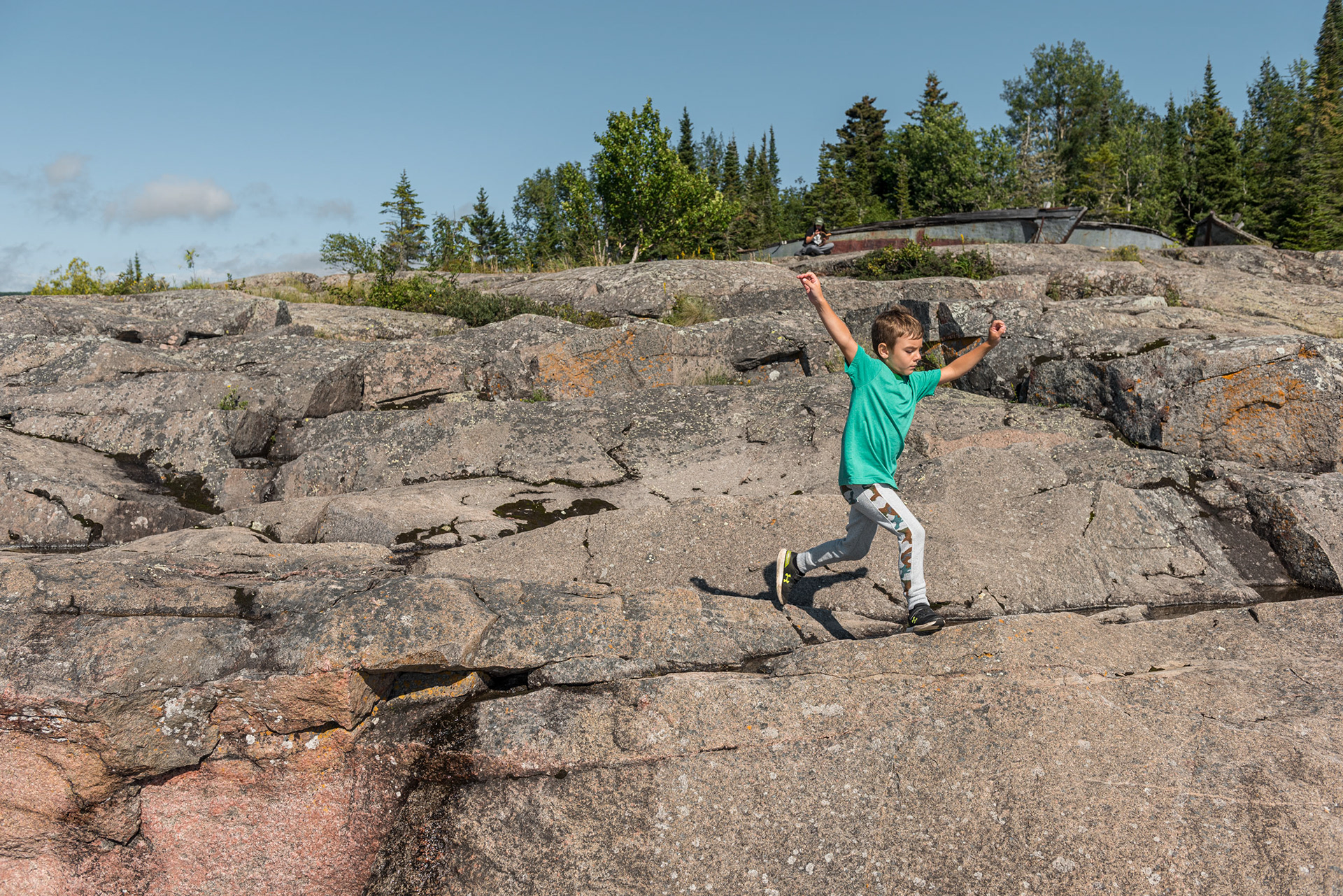 With nothing but sun in the forecast the next day, we drove in the opposite direction towards Terrace Bay. The first attraction were the Aguasabon Falls & Gorge and then we hiked the Casque Isles Hiking Trail towards the shore. By now it was getting pretty warm and our troopers were getting a little tired.